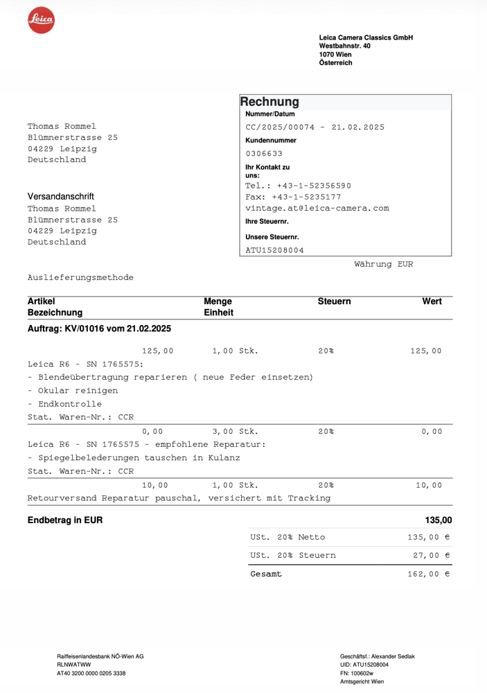 Verkaufe diesen Leica R6 Body in schwarz. Sie ist voll funktionsfähig und war im Herbst bei Leica in der Werkstatt. Dort wurde die Blendenübertragung repariert, das Okular gereinigt und die Spiegelbelederung ausgetauscht. Es ist ein wunderbares Stück manueller Fotogeschichte. Der äußere Zustand ist "B". Keine Garantie oder Rücknahme.